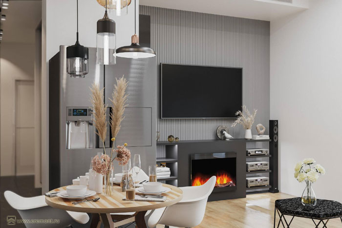 Еще один важный момент при ремонте новостройки с нуля: перед штроблением и выводом коммуникаций нужно утвердить расположение кухонных блоков и техники, чтобы потом не возникало проблем с подключением воды и электричества.