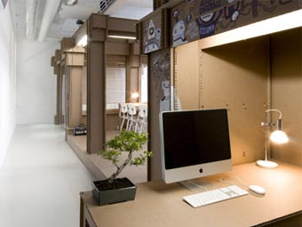 Все элементы в этом офисном помещении, в том числе, мебель и перегородки, сделаны из особо прочного картона, общая площадь которого составила 500 квадратных метров. При этом при сборке элементов интерьера дизайнеры не использовали клей или шурупы.
